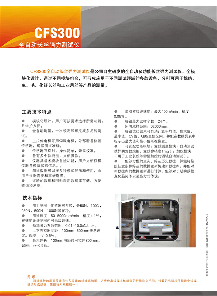 產(chǎn)品名稱: CFS300 全自動(dòng)長(zhǎng)絲強(qiáng)力測(cè)試儀